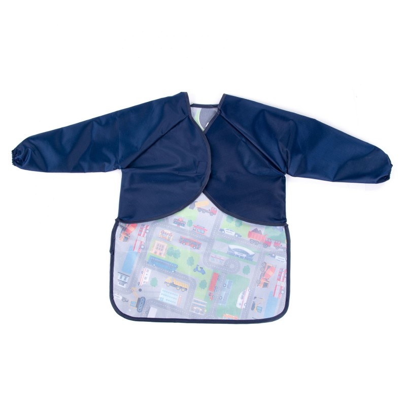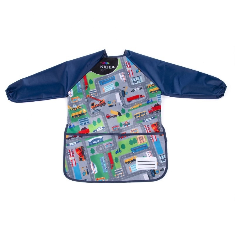 Fartuszek do prac plastycznych ze wzorem w auta, idealny dla każdego chłopca. Wykonany z łatwego do czyszczenia materiału. Sprawdzi się wśród maluchów, które dopiero zaczynają przygodę z plastyką. Przeznaczony głównie dla dzieci w wieku 3-6 lat. Długie rękawki stanowią dodatkową ochronę przed zabrudzeniem ubrania, a zapięcie na rzep ułatwia użytkowanie. Po artystycznych zabawach, wystarczy wyprać go ręcznie w 30 st. C i wysuszyć. Dzięki takiemu fartuszkowi Twoje dziecko będzie nie tylko miało czyste ubranie, ale również będzie niezwykle uroczo wyglądać. Fartuszek zawiera specjalne miejsce na podpis oraz oraz pojemną wygodną kieszeń na niezbędne akcesoria.Specyfikacja