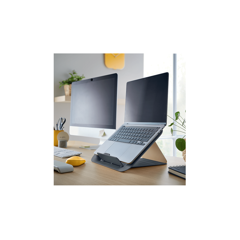 Podstawka Leitz Ergo Cosy umożliwia podniesienie laptopa na optymalną dla oczu wysokość, zapewniając wygodny kąt patrzenia na ekran oraz korygując postawę w czasie pracy. Korzystanie z podstawki poprawia także przepływ powietrza pod laptopem, zapobiegając przegrzaniu baterii i innych komponentów, co pomaga utrzymać wysoki poziom wydajności urządzenia. Minimalistyczne wzornictwo i matowe wykończenie w ciekawych kolorach nadają jej stylowy wygląd. Połącz ją z innymi produktami Leitz Ergo, aby stworzyć komfortowe i elastyczne środowisko pracy, które zapewni Ci wydajność przez cały dzień. •Idealna do pracy zarówno w pozycji siedzącej, jak i stojącej, przyczynia się do poprawy ogólnego stanu zdrowia i wspiera produktywność •Podnieś laptopa, aby ustawić ekran na optymalnej dla oczu wysokości •Elementy gumowe i zintegrowany uchwyt zapewniają bezpieczne i stabilne umieszczenie laptopa na podstawce, zapobiegają jego przesuwaniu •Przeznaczona do laptopów z ekranem o przekątnej od 13" do 17Specyfikacja