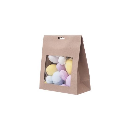 Pastelowe jaka w odcieniach liliowym, żółtym, błękitnym i białym, w różnych rozmiarach. Wykonane z trwałego materiału, pokryte matową farbą na bazie wody. Doskonale imitują naturalne pisanki. Niezastąpiony element projektów takich jak wianki, koszyczki czy wiszące kompozycje. Z pewnością urozmaicą czas spędzony z dzieckiem! Dzięki większym rozmiarom stanowią świetną bazę pisanki, którą można ozdobić gotowymi elementami (kryształki, tasiemki, naklejki) bądź pomalować farbami akrylowymi, tuszami, mazakami. Dodatkową zaletę stanowi eleganckie opakowanie w stylu eko. W zestawie 16 szt. Wielkość: 4, 6, 7 cmSpecyfikacja