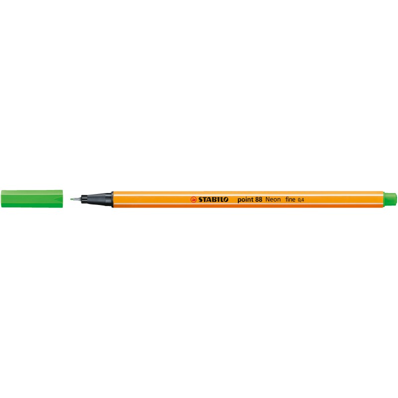 STABILO point 88 to najpopularniejszy cienkopis w Europie. Idealny do pisania, rysowania, podkreślania, kolorowania i pracy z linijką. Dostępny jest aż w 47 kolorach, dzięki czemu nadaje się też do tworzenia map myśli i kolorowych notatek, które ułatwiają zapamiętywanie. Mocna, oprawiona w metal końcówka jest odporna na złamania i rozwarstwienia, co gwarantuje wysoki komfort pisania aż do całkowitego wyczerpania tuszu. Dodatkowe zalety to odporność na zasychanie (pozostawiony bez skuwki nie zasycha przez długi czas) i wentylowana skuwka co w przypadku jej nagłego połknięcia zabezpiecza przed uduszeniem. Grubość linii pisania 0,4 mm. Kolor zielony neonowy.Specyfikacja
