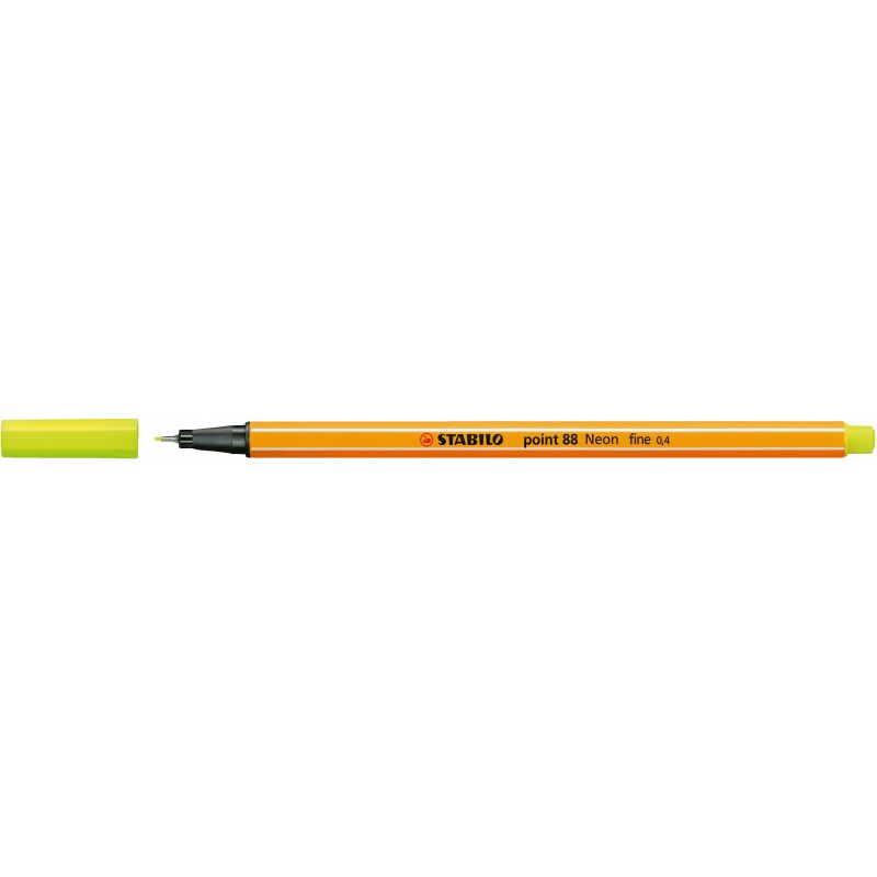 STABILO point 88 to najpopularniejszy cienkopis w Europie. Idealny do pisania, rysowania, podkreślania, kolorowania i pracy z linijką. Dostępny jest aż w 47 kolorach, dzięki czemu nadaje się też do tworzenia map myśli i kolorowych notatek, które ułatwiają zapamiętywanie. Mocna, oprawiona w metal końcówka jest odporna na złamania i rozwarstwienia, co gwarantuje wysoki komfort pisania aż do całkowitego wyczerpania tuszu. Dodatkowe zalety to odporność na zasychanie (pozostawiony bez skuwki nie zasycha przez długi czas) i wentylowana skuwka co w przypadku jej nagłego połknięcia zabezpiecza przed uduszeniem. Grubość linii pisania 0,4 mm. Kolor żółty neonowy.