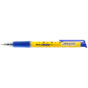 Długopis automatyczny w plastikowej żółtej obudowie w gwiazdki, klip i gumowy uchwyt w kolorze tuszu. Trwała kulka z węglików spiekanych 0,7mm. Szwajcarski wkład z tuszem gładko-piszącym do pisania po wszystkich rodzajach papieru, np. po odwrotnej stronie druków samokopiujących (faktur). Dostępne kolory: czarny, niebieski, czerwony, zielony.Specyfikacja