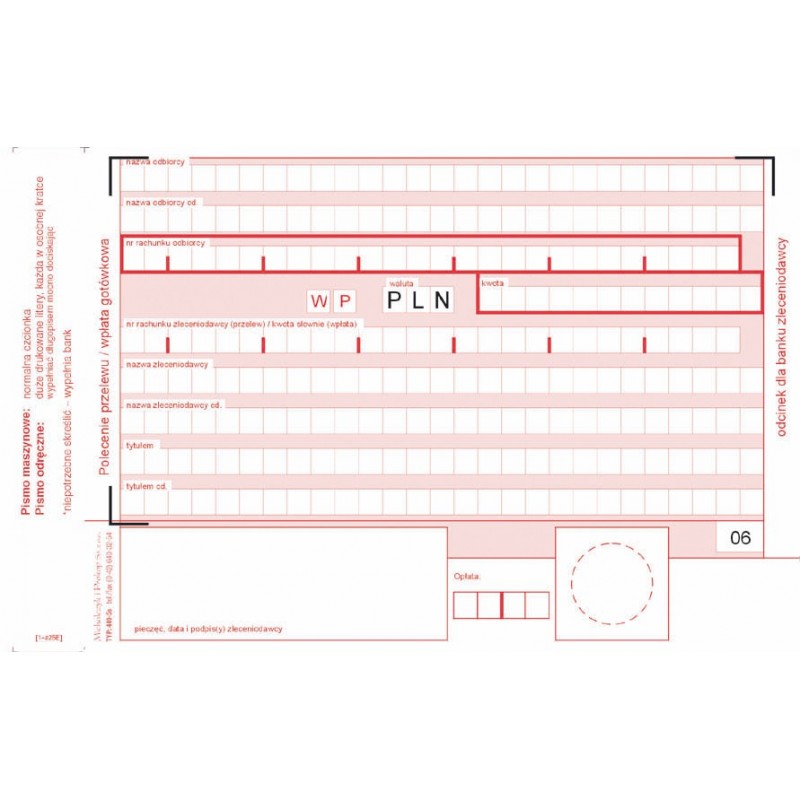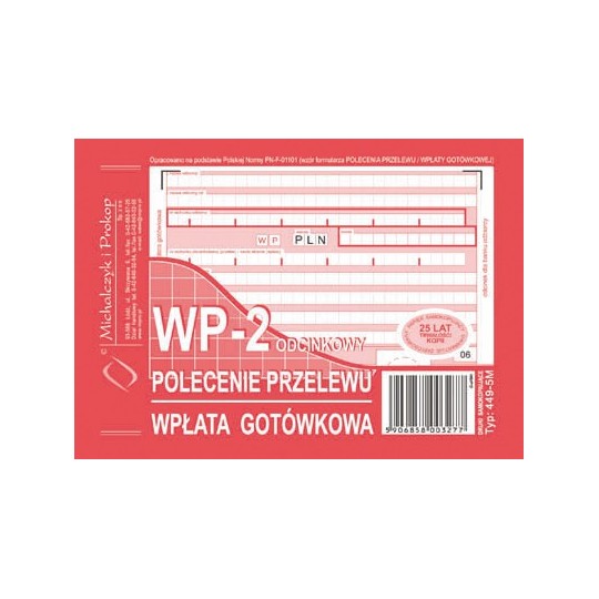 Polecenie przelewu wpłata gotówkowa A6, typ 449-5M