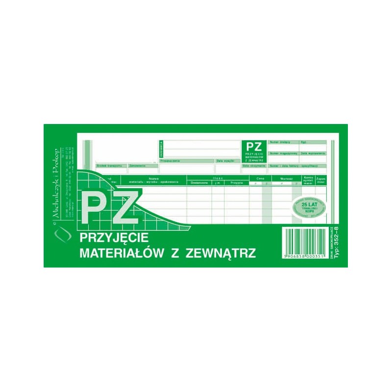PZ Przyjęcie materiałów z zewnątrz 1/3 A4 wielokopia, typ 352-8