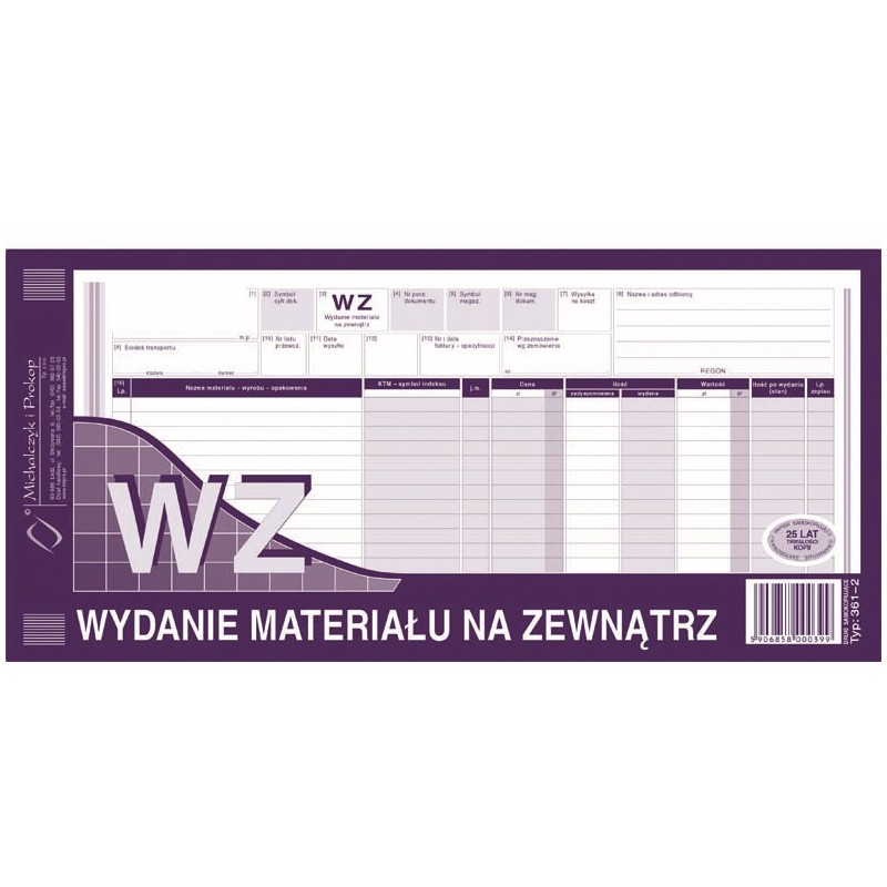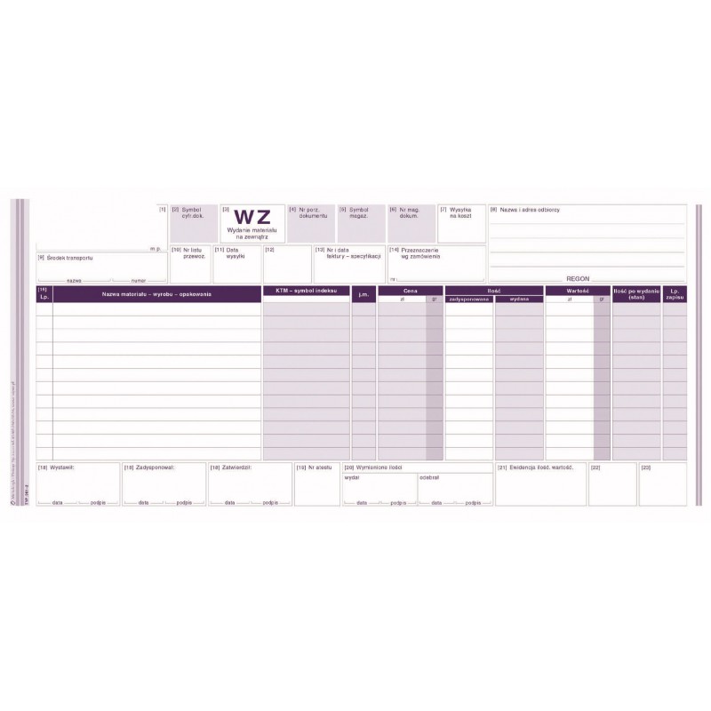 WZ Wydanie materiału na zewnątrz 1/3 A3, typ 361-2