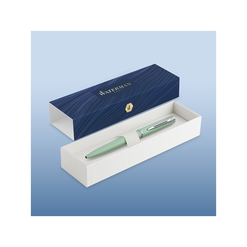 Linia długopisów Waterman Allure, zwłaszcza w jej pastelowych odcieniach stworzona została z myślą o subtelnych osobach, które poszukują delikatnych, wręcz z nutką romantyzmu gadżetów. Długopis Allure miętowy to produkt idealny do użytkowania codziennego, ze szczególnym przeznaczeniem dla osób dużo piszących odręcznie. Z tego względu, świetnie sprawdza się zarówno dla uczniów, nauczycieli, studentów, dziennikarzy, etc. To długopis, który jest bardzo funkcjonalny i praktyczny. Lekki i niezawodny, smukły – przez co świetnie wpasuje się do każdego piórnika. Dzięki zastosowaniu znakomitych i dedykowanych marce Waterman wkładów, zyskuje się pewność, iż będzie on pisał bez najmniejszych problemów przez długi czas. Stylowa forma oraz ciekawa kolorystyka długopisu powodują, iż chętnie sięgają po niego osoby ceniące sobie oryginalne produkty. To długopis dla koneserów, miłośników piękna ceniących sobie ponad wszystko markowe oraz dobrej jakości produkty. W zestawie: długopis, firmowe pudełko Waterman, wkład do długopisu, książeczka gwarancyjna.Specyfikacja