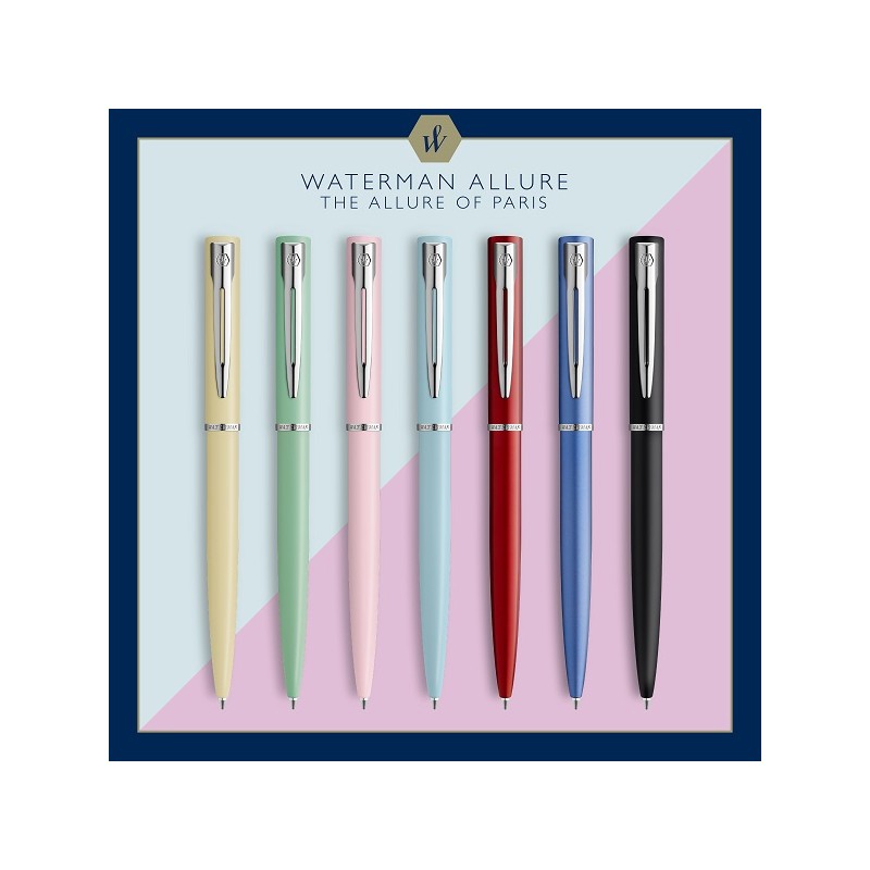 Fantastyczny, niebieski długopis Waterman Allure CT. To propozycja dla młodych i nie stroniących od oryginalnych przedmiotów osób, które stawiają na nowoczesność, z domieszką klasycznej elegancji. Ten śliczny długopis jest znakomitym pod wieloma względami produktem, który posłuży przez długie lata. Wykonany został z bardzo trwałych, wręcz doskonałych części składowych, które tworzą wyjątkową, wytrzymałą i piękną całość. Długopis wykonany został z wysokiej jakości komponentów. Pokryty został lakierem w barwie niebieskiej, metalicznej. Uroku dodają mu srebrne pierścienie oraz klips ze stali nierdzewnej, które zostały dodatkowo pokryte błyszczącym chromem. Tworzy to wyjątkowy efekt wizualny. Dla łatwego użytkowania, długopis zaopatrzono we wciskany mechanizm do wysuwania wkładu. Ten piękny długopis Waterman Allure posiada oryginalny, jasny niebieski kolor oraz srebrne wykończenia. Czyni to z niego oryginalny środek piśmienniczy, którego nie powstydzi się żadna modna dziewczyna, ani też nowoczesny chłopak. Z uwagi na dość nowoczesną formę, ciekawy design, przystępną cenę oraz dużą wytrzymałość, długopis bardzo chętnie wybierany jest przez uczniów oraz studentów.Specyfikacja