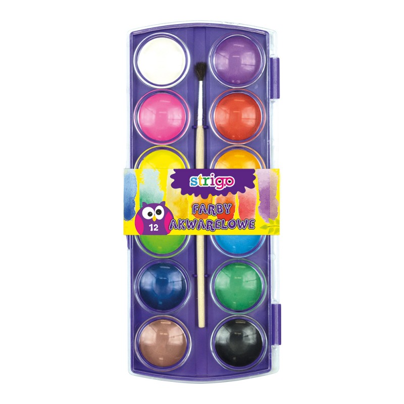 Farby akwarelowe Strigo 12 kolorów + pędzelek