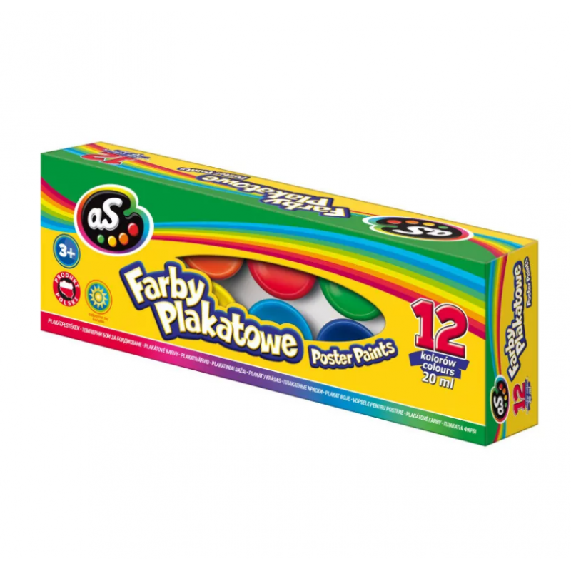 -Farby szkolne to są wodne farby o konsystencji półpłynnej. -Konsystencja farb pozwala na wygodne i szybkie użycie, bez konieczności rozcieńczania ich wodą (malowanie bezpośrednio z pojemnika). -Farbami szkolnymi można malować na takich podłożach jak: papier, karton, drewno, ceramika, inne. -Produkt Polski. -12 kolorów. -Pojemność: 20 ml.Specyfikacja