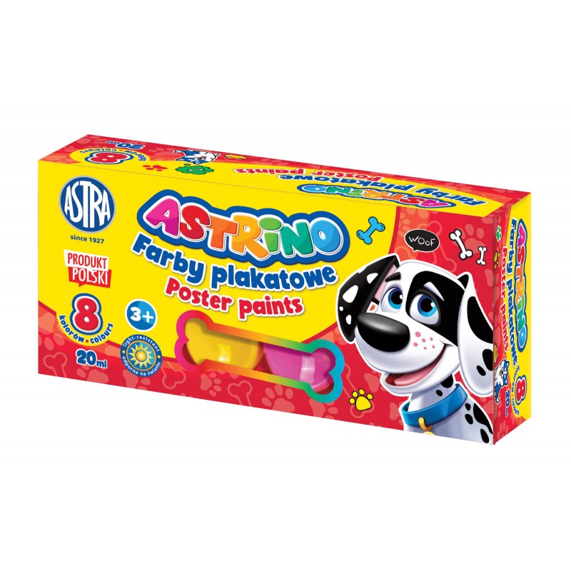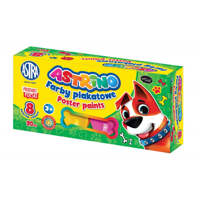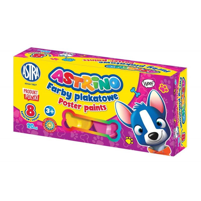 Farby plakatowe do malowania na papierze, kartonie, drewnie, nieglazurowanej ceramice i kamieniu. Wodorozcieńczalne farby kryjące są niezwykle wydajne i cechują się soczystymi i niezwykle intensywnymi barwami. Składają się w 98% z naturalnych składników i są odporne na działanie światła i ścieranie. Doskonale sprawdzą się na zajęciach z plastyki w przedszkolu oraz szkole.Specyfikacja