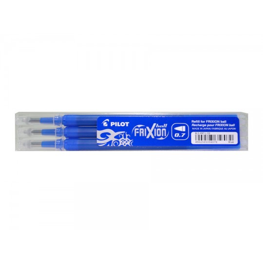 Zestaw wkładów wymiennych do cienkopisów kulkowych PILOT FRIXION. W opakowaniu 3 sztuki. Cechy: - kolor tuszu niebieski - szerokość linii pisania: 0,35 mm - grubość końcówki piszącej: Medium - rozmiar: 0,70 mm Wymiary opakowania zbiorczego: 9,5x12,2x2cmSpecyfikacja