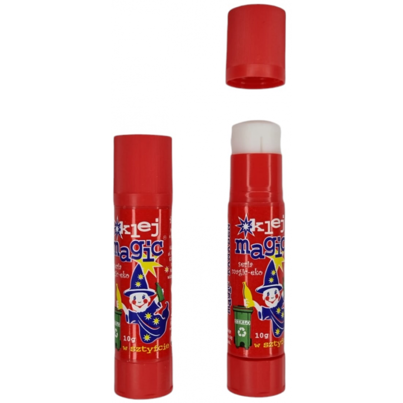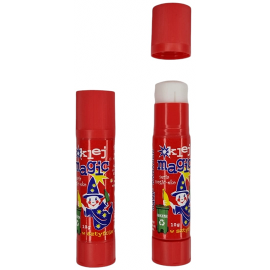 Klej Magic w sztyfcie 10g NOWY Klej Magic w sztyfcie jest wygodniejszy w użyciu i łatwiejszy w otwieraniu. Posiada, takie same unikatowe atrybuty klejące jak poprzedni model. To produkt posiadający najkorzystniejsze atrybuty jeśli chodzi o sztyfty klejowe. Wyśmienicie sprawdza się równocześnie w biurze, przedszkolu czy szkole, jak i na biurkach naszych milusińskich. Rewelacyjnie sprawdza się zarówno w biurze, przedszkolu czy szkole, jak i na biurkach naszych milusińskich. Znakomity do: - papieru - kopert - znaczków - bibuły - wycinanek - fotografii Opakowanie 10gSpecyfikacja