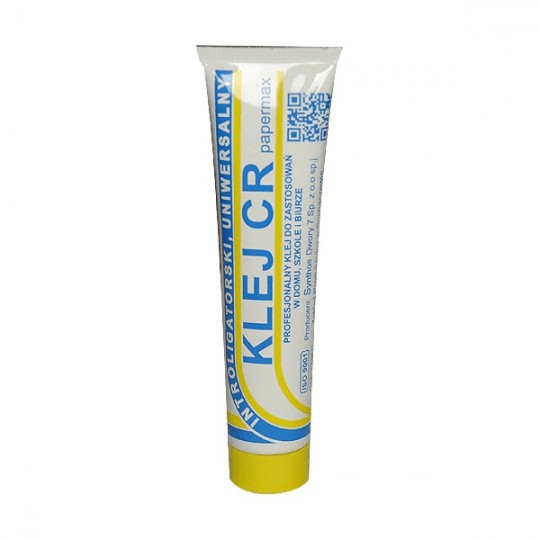 Klej CR (introligatorski) Zastosowanie: -Do klejenia ręcznego i maszynowego opakowań papierowych i kartonowych. -W introligatorstwie do produkcji książek, kalendarzy i bloczków, druków akcydensowych. -Do prac artystycznych, oprawy obrazów i reprodukcji oraz prac dekoracyjnych. -Do klejenia makiet i w modelarstwie kartonowym. -Do klejenia etykiet papierowych do opakowań foliowych. -Do przyklejania foli aluminiowych. -Do tkanin naturalnych(bawełna,len) oraz sztucznych poliestrowych i poliamidowych. -Do klejenia i naprawy fajansu, glazury i terakoty. -Klej CR daje się barwić licznymi pigmentami co daje kolorową spoinę po wyschnięciu. -Po dodaniu pigmentu można nim malować jak farbą akrylową. -Służy do przyklejania plakatów i zdjęć w dokumentach. -Jest używany do zdobienia świecidełek choinkowych różnymi posypkami np. z brokatu. Parametry: -czas chwytania 10s -czas klejenia do uzyskania pełnej wytrzymałości 24h -zużycie kleju 0,1-0,4 kg/m2 Asortyment: -tuby 75g -pojemniki 200g -kubełki 600g Klej CR należy magazynować i przechowywać w szczelnych opakowaniach w temperaturze od 5 do 350C z dala od grzejników i bez narażania na bezpośrednie działanie promieni słonecznych. Klej CR należy bezwzględnie chronić przed mrozem.Specyfikacja