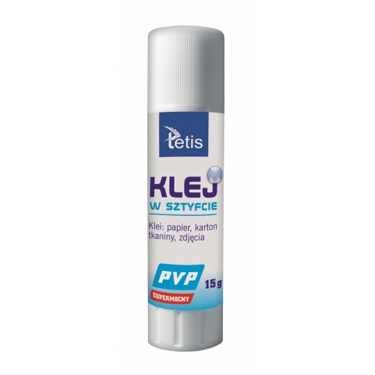 Klej w sztyfcie bezbarwny 15 g -Typ PVP -Supermocny, nietoksyczny, nie marszczy papieru -Idealny do papieru zwykłego i dekoracyjnego, kartonu, tkanin, fotografiiSpecyfikacja