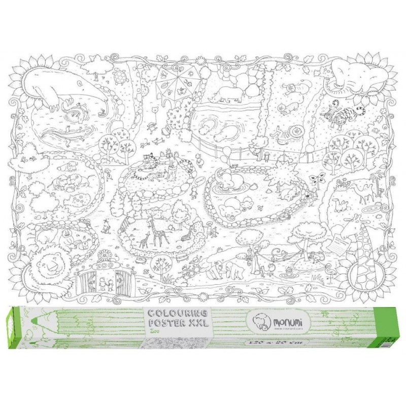 Kolorowanka podłogowa XXL "Zoo" 120x80cm Ogromna powierzchnia do kolorowania kredkami, flamastrami i farbami Kolorowanka wykonana jest z grubego kartonu (podobnego do brystolu), który można bez końca rozkładać i zwijać Wzmocniony spód arkusza zabezpiecza przed przesiąkaniem farb Przygotowane ilustracje ćwiczą spostrzegawczość, a duża powierzchnia umożliwia wspólne rysowanie kilkorgu dzieciom jednocześnie Wygodne opakowanie w formie tuby zabezpiecza kolorowankę i ułatwia transport Wiek: 5+ Wymiary: 120 x 180 cm Wymiary opakowania: 7 x 82 x 7 cm Waga z opakowaniem: 0,4 kgSpecyfikacja