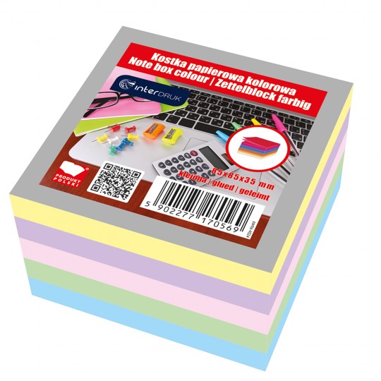 Kostka papierowa kolorowa klejona Interdruk 85x85x35 mm