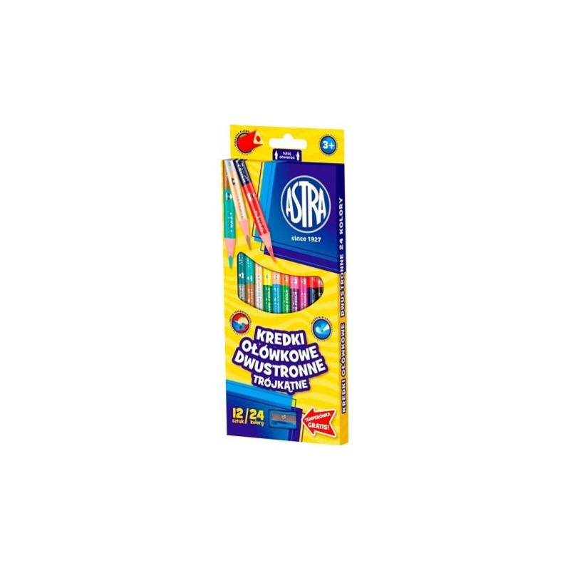 Kredki trójątne dwukolorowe Astra 12 sztuk 24 kolory