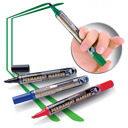 Marker MAXIFLO z tłoczkiem ze ściętą końcówką - PERMANENTNY System dozowania tuszu za pomocą tłoczka Linia pisania 2-krotnie dłuższa niż w standardowych markerach Zawsze świeża i intensywna linia Grubość linii pisania:4-4,30 Ekologiczność 38% Płynny tusz na bazie alkoholu Materiał Obudowa: polipropylen Długość linii pisania: 110 Wykonany w technologii MAXIFLO. Ekonomiczny system dozowania tuszu do końcówki – za pomocą tłoczka. Dwukrotnie dłuższa linia pisania niż w standardowych markerach permanentnych. Płynny tusz na bazie alkoholu. Bezpieczny w użytkowaniu – nie zawiera ksylenu i toluenu – substancji szkodliwych dla zdrowia i środowiska. Do wyboru kolor: czarny, czerwony, niebieski, zielony.Specyfikacja