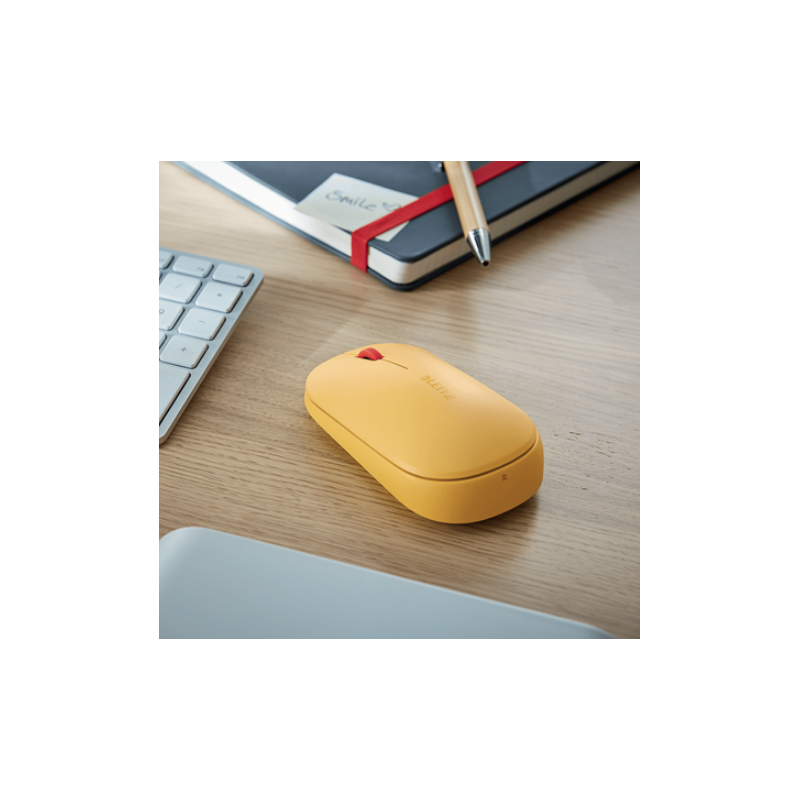 Poczuj się jak w domu wszędzie tam, gdzie zaprowadzą Cię służbowe obowiązki, dzięki kolekcji Leitz Cosy. Minimalistyczne wzornictwo i przyjemne kolory z matowym wykończeniem sprawią, że Twoje miejsce pracy będzie bardziej stylowe i kolorowe. Bezprzewodowa mysz Leitz Cosy SureTrack™ Dual zapewnia precyzyjne sterowanie myszą na dowolnej powierzchni oraz wiele opcji łączności, zabezpieczeń i personalizacji ustawień, dzięki czemu możesz dostosować jej pracę do otoczających Cię warunków. Ta najwyższej jakości mysz komputerowa jest idealnym dodatkiem do Twojego domu lub biura i zapewni Ci wygodę, dobre samopoczucie i produktywność przez cały dzień. -Elegancka bezprzewodowa mysz zapewni Ci komfort użytkowania przez cały dzień, gdziekolwiek pracujesz -Dzięki precyzyjnemu sterowaniu i wielu opcjom łączności, bezpieczeństwa i personalizacji ustawień oraz funkcji Bluetooth, mysz Leitz Cosy oferuje więcej niż mógłbyś się spodziewać -Przeznaczona do komputerów PC wyposażonych w funkcję Bluetooth (lub bez niej), nowszych urządzeń z Bluetooth LE i kompatybilnych z Windows, Chrome OS, macOS i Android OS -Połącz się z laptopem lub z urządzeniem mobilnym typu smart przez Bluetooth 3.0 lub 5.0 (Bluetooth LE) lub z komputerem stacjonarnym za pomocą klucza sprzętowego 2,4 GHz USB-A Nano -Wbudowany czujnik zapewnia niezakłóconą bezprzewodową łączność, aby szybko i dokładnie można było sterować kursorem -Zapewnia precyzyjne operowanie myszą nawet po najtrudniejszych powierzchniach w nowoczesnych biurach, takich jak szkło, granit, lakier, marmur czy drewno -Technologia szyfrowania na poziomie zabezpieczeń rządowych odpowiada firmowym protokołom bezpieczeństwa, chroniąc dane przed potencjalnymi hakerami -Możliwość łatwego dostosowania prędkości kursora do własnych potrzeb, wystarczy wybrać odpowiednią rozdzielczość DPI (1200, 2400 lub 4000) - niższa rozdzielczość nadaje się do prac wymagających precyzji, a wyższa - do przeglądania internetu -Doskonała mysz bezprzewodowa zarówno dla osób prawo- jak i leworęcznych, z wysokiej jakości cichymi przyciskami i wieloma opcjami kolorów -Zasilana 1 baterią AA (w zestawie) -Opakowanie nie zawiera plastiku -Kolekcja Leitz Cosy łączy komfort domowego stylu z najwyższą jakością wykonania, umożliwiając stworzenie pozytywnego i produktywnego środowiska pracySpecyfikacja