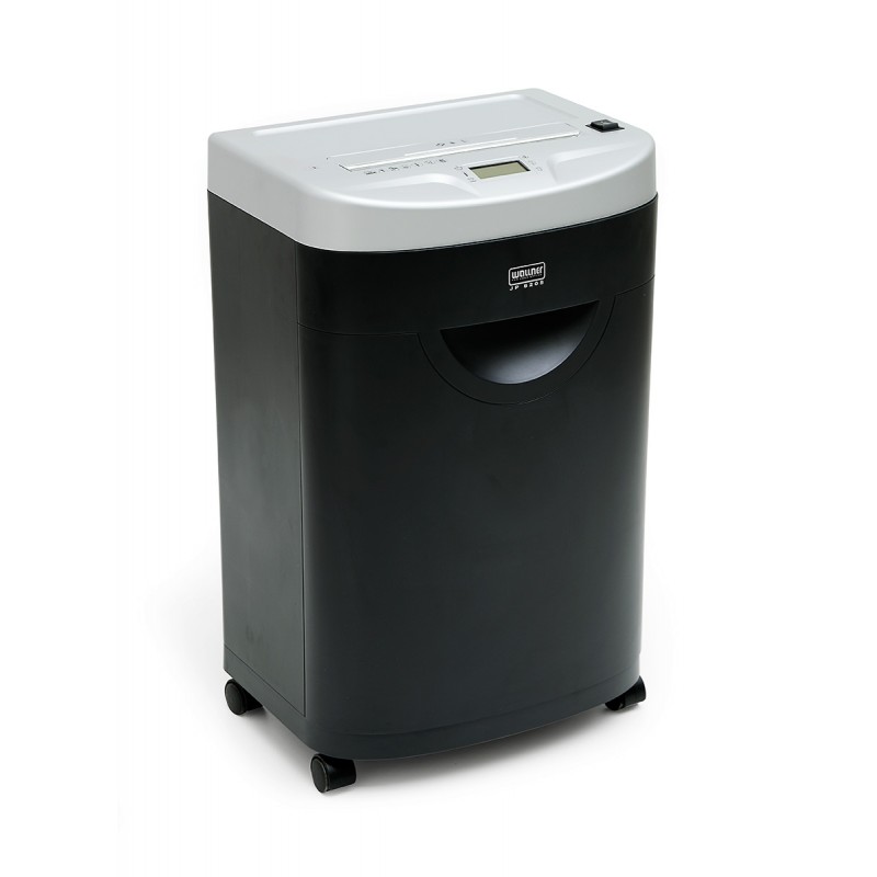 szerokość wejścia: 230 mm wielkość ścinka: 1,9 x 10 mm ilość niszczonych kartek (A4/70g): 17 poziom bezpieczeństwa DIN 66399: P-5/ O-4/ T-5/ E-4/ F-2 niszczy: zszywki, małe spinacze, karty plastikowe, płyty CD pojemność kosza: 35 l wymiary: 645 x 305 x 390 mm automatyczny start/stop i funkcja cofania cichy silnik przystosowany do pracy ciągłej do 15 minut zabezpieczenie przed przegrzaniem optyczny wskaźnik napełnienia kosza / wyjętego kosza dotykowy panel bezpieczeństwa wstrzymujący pracę urządzenia wyświetlacz LCD – wskazuje włączoną funkcję niszczarki w standardzie butelka oleju o pojemności 30 ml obudowa na kółkach gwarancja: 2 lataSpecyfikacja