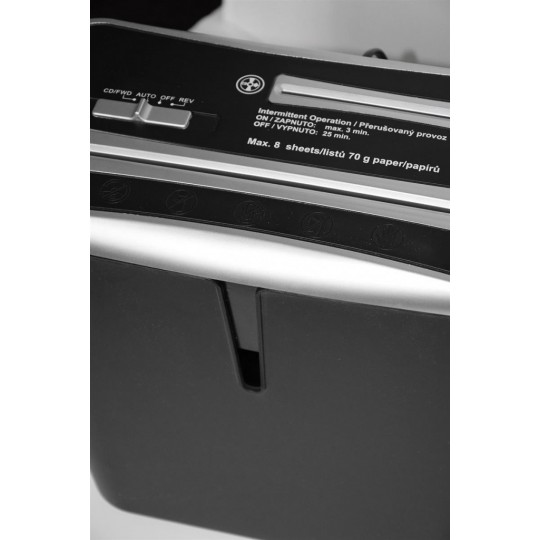 AG 110393 NISZCZARKA WALLNER XD 805 CD -szerokość wejścia: 220 mm -wielkość ścinka: 4 x 45 mm -ilość niszczonych kartek (A4/80g) 8 szt -poziom bezpieczeństwa DIN 66399: P-3/ T-2/ E-2 -niszczy: karty plastikowe, płyty CD, zszywki -pojemność kosza: 13 l -wymiary: 322 x 163 x 310 mm -waga: 4 kg -automatyczny start/stop zabezpieczenie silnika przed przegrzaniemSpecyfikacja