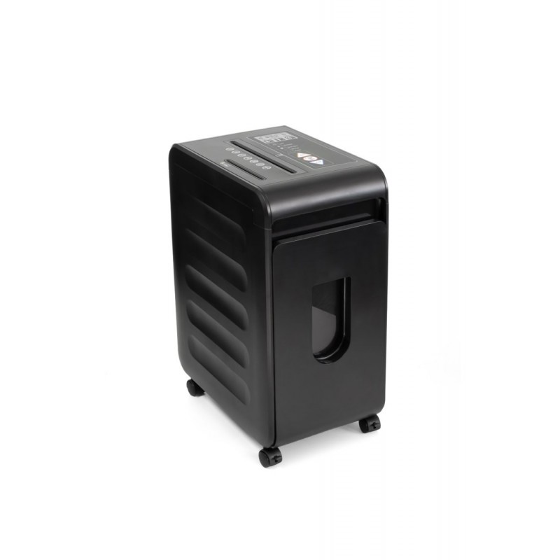 szerokość wejścia: 230 mm wielkość ścinka: 4 x 40 mm ilość niszczonych kartek (A4/80g): 12 poziom bezpieczeństwa DIN 66399: P-4/ O-1/ T-4/ E -3/ F -1 niszczy: karty plastikowe, płyty CD, zszywki i małe spinacze pojemność kosza: 22 l wymiary: 380 x 250 x 517 mm automatyczny start/stop funkcja autoreverse cichy silnik przystosowany do pracy ciągłej do 10 min segregacja odpadów – osobny pojemnik na ścinki płyt i kart plastikowych zabezpieczenie silnika przed przegrzaniem gwarancja: 2 lataSpecyfikacja