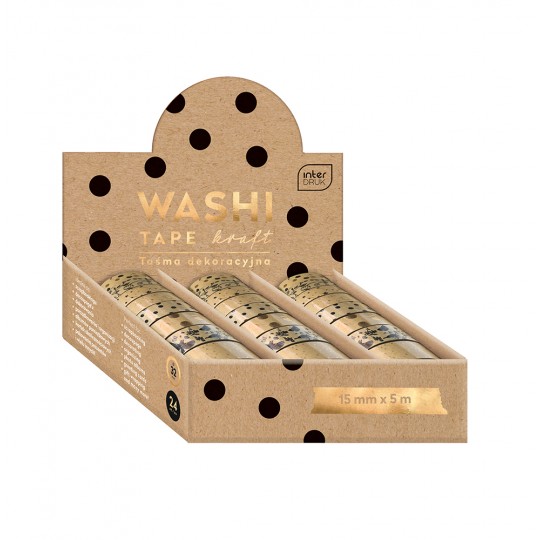 Ozdobne taśmy dekoracyjne Interdruk Kraft w kolorze nude. Doskonałe do pakowania prezentów lub ozdabiania. Zestaw zawiera 8 taśm z 8 wzorami. Jedna taśma ma 5 metrów długości i 1,5cm szerokości. wytrzymała i dobrze przylegająca do płaskich powierzchni. można po niej pisać. samoprzylepna. Cena za 1 szt Wzór wysyłany losowoSpecyfikacja