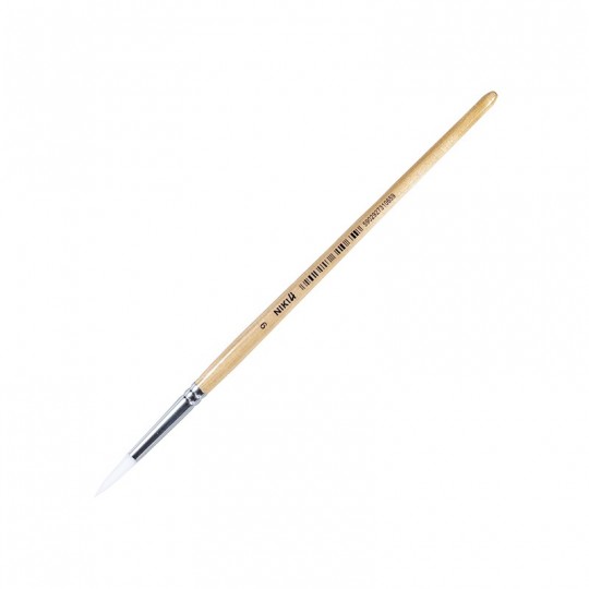 Pędzel okrągły przeznaczony jest do malowania: detali, wypełnień, cienkich i grubych linii. Wykonany jest z nylonu. Trzonek pędzla wykonany jest z lakierowanego drewna, włosie umieszczone jest bezszwowo w metalowej skuwce. Polecany jest do farb akrylowych, akwarelowych, temper oraz farb plakatowych. - Okrągły pędzel, którego trzon wykonany jest z naturalnego drewna, lakierowanego przezroczystym matowym lakierem UV - Pędzel posiada aluminiową obsadkę oraz klejone, syntetyczne białe włosy - Pędzel zabezpieczony jest plastikową osłonką zabezpieczającą włosie przed uszkodzeniemSpecyfikacja