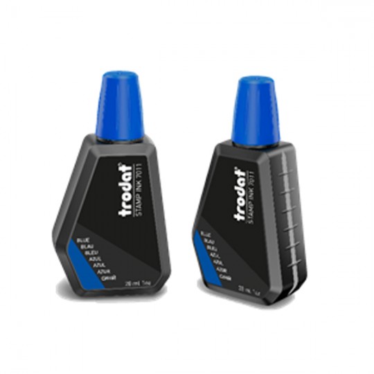Tusz wodny Trodat 7011 do znakowania papieru. Do pieczątek ręcznych i samotuszujących, z gumową lub polimerową płytką stemplującą. Wyjątkowo elastyczna buteleczka 28 ml z końcówką ułatwiającą precyzyjne nasączenie poduszek oraz nakrętką w kolorze tuszu. Przezroczysty pasek z bolku butelki pomaga kontrolować poziom tuszu.Specyfikacja