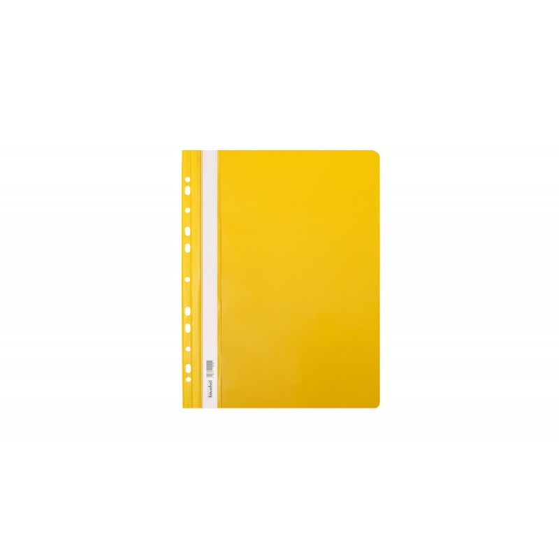 Skoroszyt Twardy Zawieszany -folia PVC, przód twardy przezroczysty, tył twardy kolorowy -boczna perforacja umożliwia wpięcie do segregatora z dowolnym ringiem- -w środku blaszka i wąs o długości 16,5 cm, umożliwiający wpięcie dokumentów do 2 cm -wymienny papierowy pasek do opisu z kodem kreskowym na szt. -dwa wycięcia ułatwiające wysuwanie paska -zaokrąglone rogi obu okładek -Do Formatu A4Specyfikacja