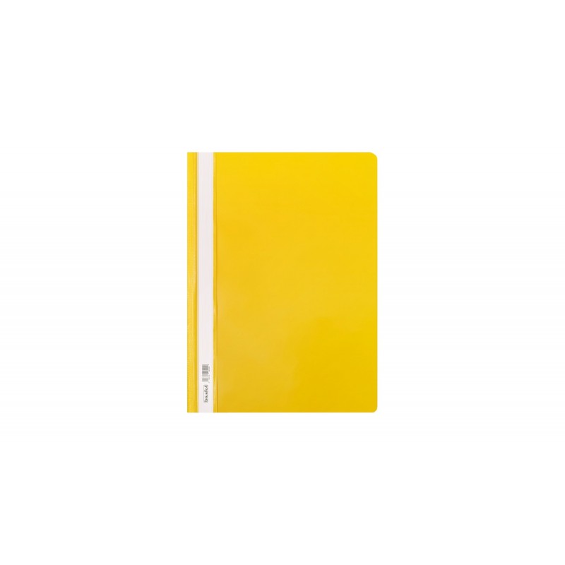 folia PVC, przód twardy przezroczysty, tył twardy kolorowy w środku blaszka i wąs o długości 16,5 cm, umożliwiający wpięcie dokumentów do 2 cm wymienny papierowy pasek do opisu z kodem kreskowym na szt. dwa wycięcia ułatwiające wysuwanie paska zaokrąglone rogi obu okładekSpecyfikacja