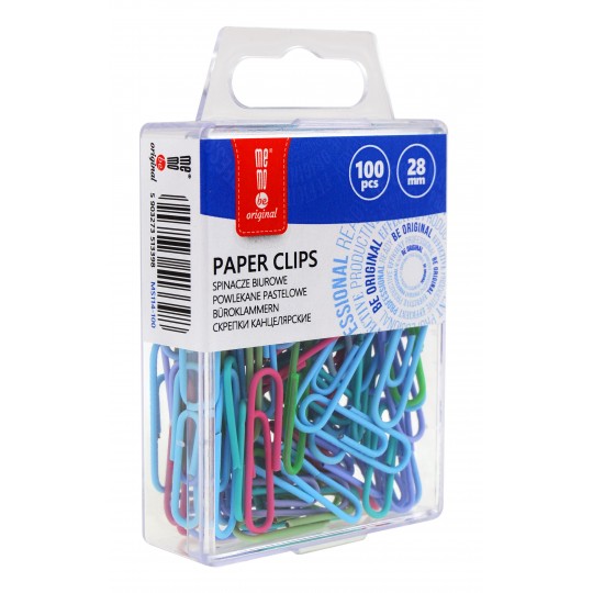 -Spinacze powlekane MemoBe w pastelowych kolorach o długości 28mm -Wysokiej jakości stal, zaokrąglony kształt -Pakowane w przezroczystą plastikową kasetkę -Łączna ilość w opakowaniu: 100 sztuk