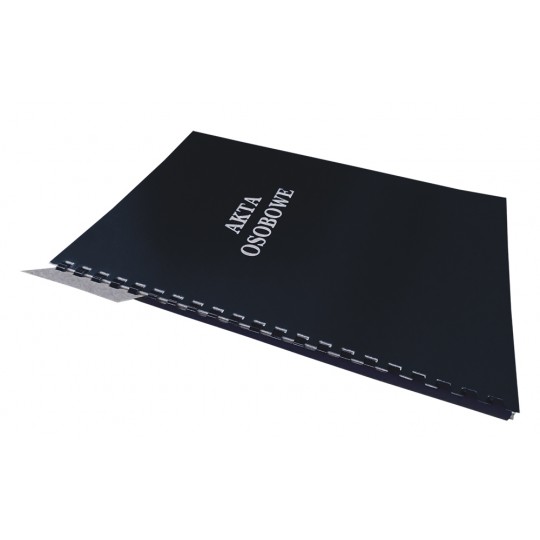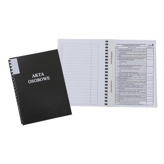 • Wymiary ~230x310 mm. • Okładka drukowana, lakierowana wykonana ze sztywnego i mocnego kartonu o gramaturze minimum 250 g/m2. • Binda wewnętrzna (fi 10 mm). • Grzbiet o szerokości ok. 10 mm. • Na grzbiecie dołączona jest tekturka z miejscem na dane personalne. • Blok składa się z kart A, B, C, D wykonanych z papieru offsetowego o gramaturze 170 g/m2 zawierających tabele z treścią według wzoru Kodeksu Pracy: - część A - dokumenty zgromadzone w związku z ubieganiem się o zatrudnienie, a także skierowanie na badania i orzeczenia lekarskie; - część B - dokumenty dotyczące nawiązania stosunku pracy oraz przebiegu zatrudnienia pracownika; - część C - dokumenty związane z rozwiązaniem albo wygaśnięciem stosunku pracy; - część D - dokumenty związane z ponoszeniem przez pracownika odpowiedzialności. • Na kartonowych przekładkach blaszki i wąsy do wpinania dokumentów pracownika. • Sposób wykonania grzbietu pozwala na wygodne wpinanie dokumentów i wpisywanie danych. • Teczki wykonane według aktualnie obowiązujących przepisów Kodeksu Pracy.Specyfikacja