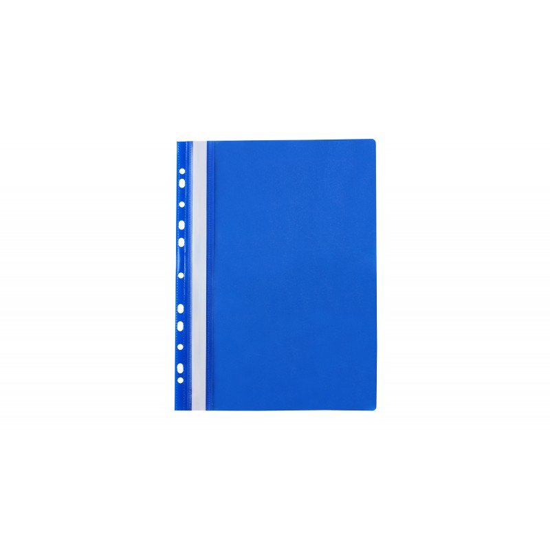 -wykonany z polipropylenu -przednia okładka przezroczysta, tylna kolorowa -w środku blaszka i wąs o długości 14,5 cm -wymienny papierowy pasek do opisu zawartości z kodem kreskowym na szt. -dwa wycięcia ułatwiające wysuwanie paska -europerforacja umożliwiająca wpięcie do segregatoraSpecyfikacja