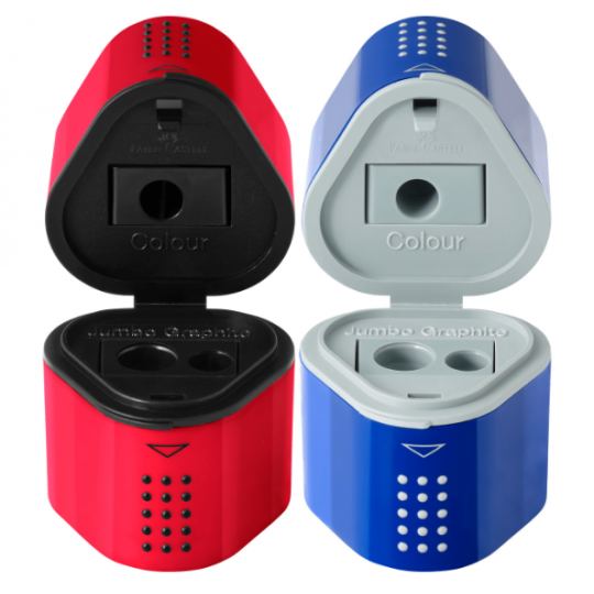 -Na standardowe, trójkątne ołówki/kredki i grube ołówki typu Jumbo. -Z 2 pojemniczkami na ostrużyny po obu stronach. -Kolor wysyłany losowo.Specyfikacja