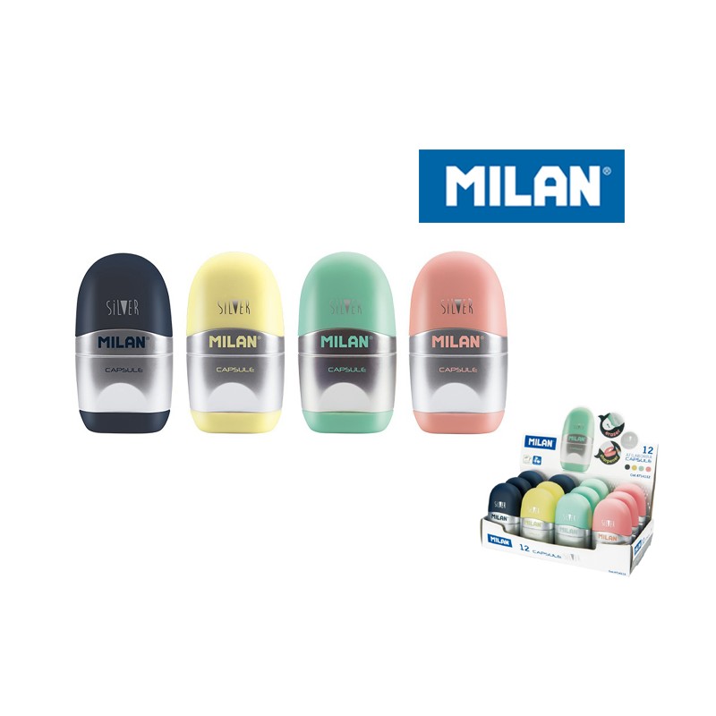 -Temperówka + gumka Milan -Gumka chlebowa, miękka, z kauczuku syntetycznego -Do wycierania szerokiej gamy ołówków grafitowych -Artykuł z bezpiecznym ostrzem uniemożliwia oddzielenie nożyka od obudowy temperówki -Idealne do użytku szkolnego -Nożyk ze stali węglowej, ostry i wytrzymały -Idealny do kredek i ołówków grafitowych -Kolor wybierany losowo.Specyfikacja