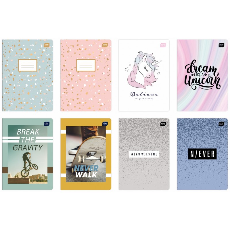 -Zeszyty format: A5 -Liczba kartek: 60 -Zadruk w kratkę -Waga:120 g -Wymiary:150 x 210 mm -Zaokrąglone rogi -Okładka pokryta lakierem UV -Oprawa miękka. -Mix wzorów – towar wysyłany losowo.Specyfikacja