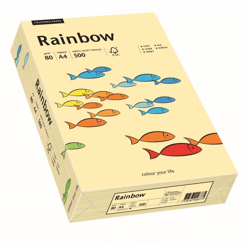 Papier ksero kolorowy Rainbow /06/ kość słoniowa A4, 80 g, inspirujący asortyment bezdrzewnego, barwionego w masie papieru niepowlekanego w szerokiej gamie kolorystycznej dedykowany do zastosowań biznesowych: korespondencja, ulotki, zaproszenia, jak również do wszelkich kreatywnych realizacji Rainbow® pakowany jest w eleganckie, przyciągające wzrok, przezroczyste opakowanie posiada gwarancję jakości preprint dla gramatur 80 - 160 g/m2 jednostka sprzedaży 1 ryzaSpecyfikacja