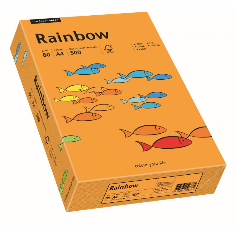 Papier ksero kolorowy Rainbow /24/ pomarańczowy A4, 80 g, inspirujący asortyment bezdrzewnego, barwionego w masie papieru niepowlekanego w szerokiej gamie kolorystycznej dedykowany do zastosowań biznesowych: korespondencja, ulotki, zaproszenia, jak również do wszelkich kreatywnych realizacji Rainbow® pakowany jest w eleganckie, przyciągające wzrok, przezroczyste opakowanie posiada gwarancję jakości preprint dla gramatur 80 - 160 g/m2 jednostka sprzedaży 1 ryzaSpecyfikacja