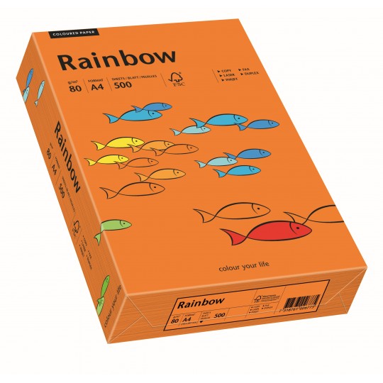 Papier ksero kolorowy Rainbow /26/ c.pomarańczowy A4, 80 g, inspirujący asortyment bezdrzewnego, barwionego w masie papieru niepowlekanego w szerokiej gamie kolorystycznej dedykowany do zastosowań biznesowych: korespondencja, ulotki, zaproszenia, jak również do wszelkich kreatywnych realizacji Rainbow® pakowany jest w eleganckie, przyciągające wzrok, przezroczyste opakowanie posiada gwarancję jakości preprint dla gramatur 80 - 160 g/m2 jednostka sprzedaży 1 ryzaSpecyfikacja
